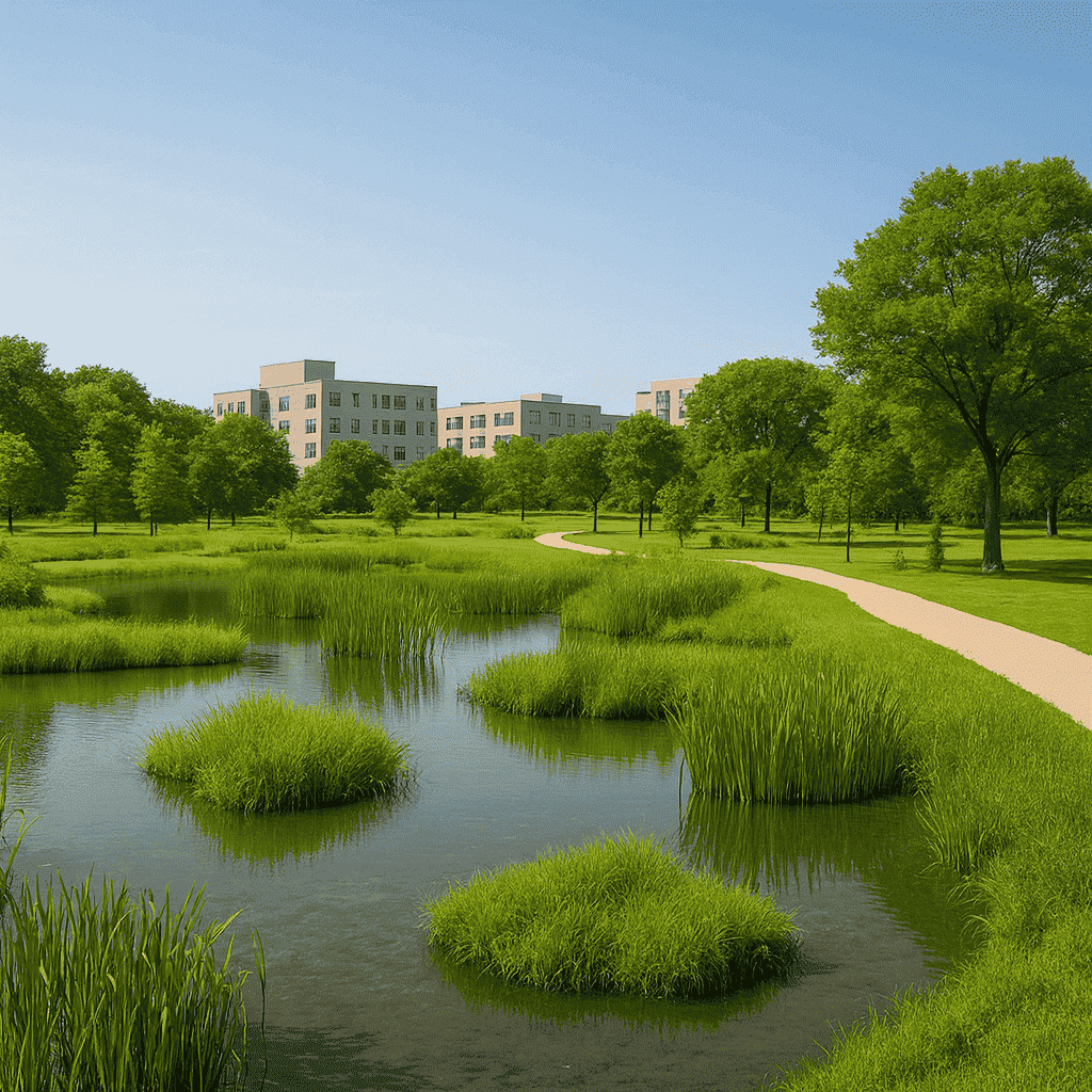 Les solutions fondées sur la nature (SFN) offrent une réponse durable. Parcs inondables, bassins de rétention et zones végétalisées absorbent l’eau et réduisent la pression sur les réseaux.